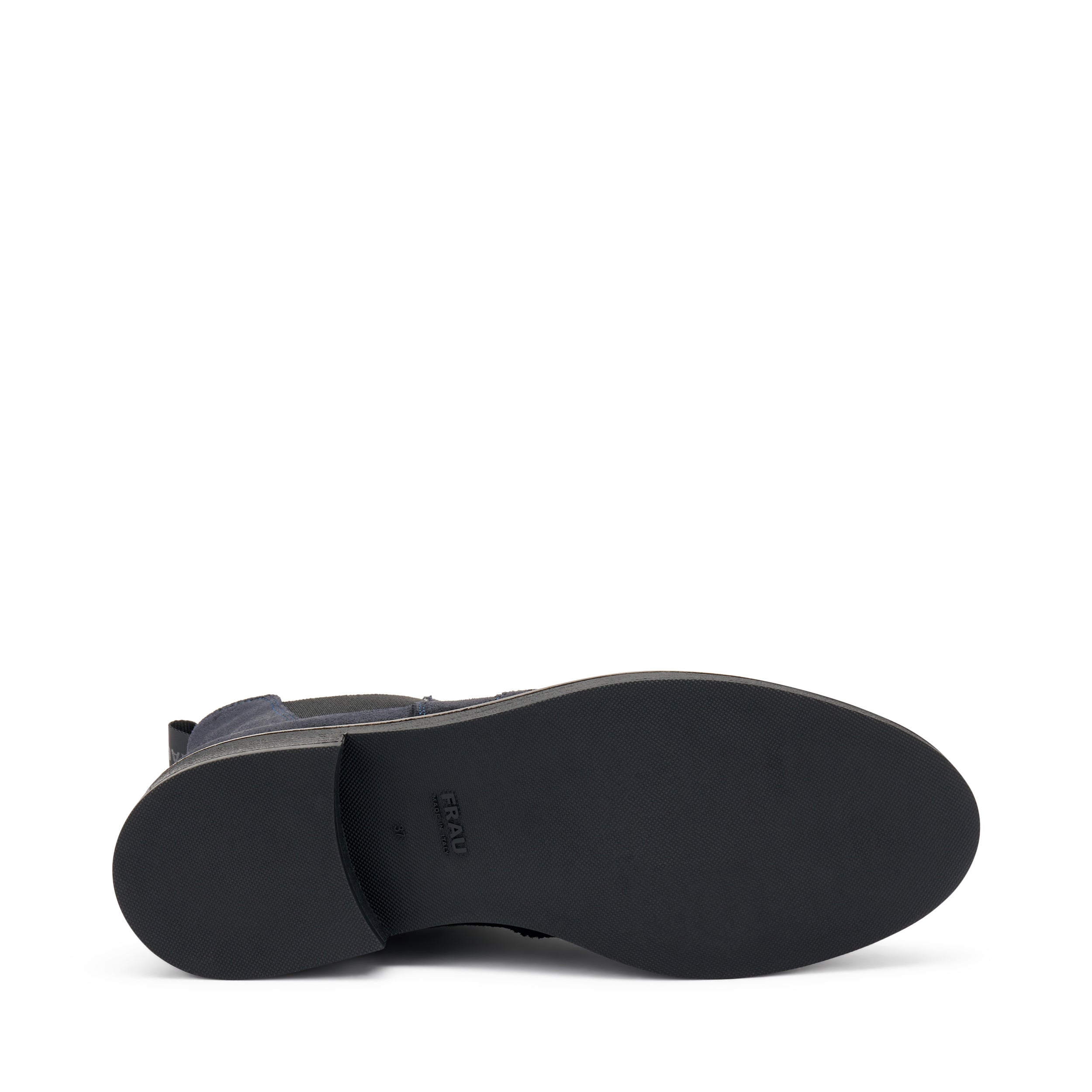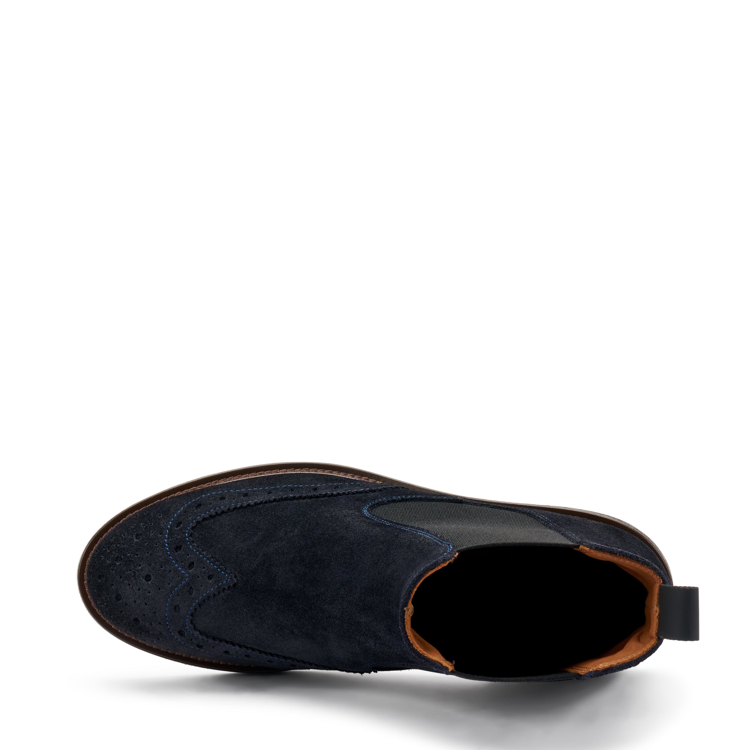 Beatles in camoscio, ideati e pensati dai maestri artigiani veneti, racchiudono il fascino e l'essenza del classico look all'inglese. Dalla suola con guardolo in cuoio al disegno a coda di rondine, i dettagli sono curati e le finiture conservano il sapore artigianale come il finish anticato conferito da mani esperte.