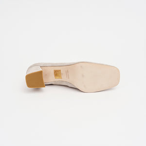 Lo scollo, la punta e il tacco leggermente quadrati donano una linea insolita.