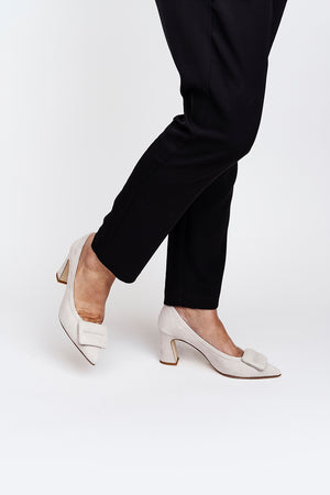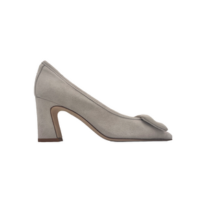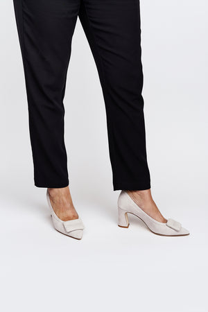 Décolleté in camoscio con punta slanciata e accessorio tacco 7 cm.