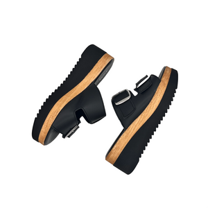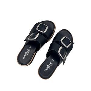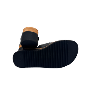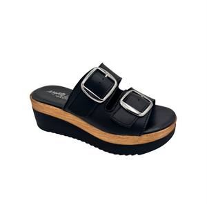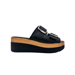 Ciabattina con due fasce regolabili, zeppa 5 cm.