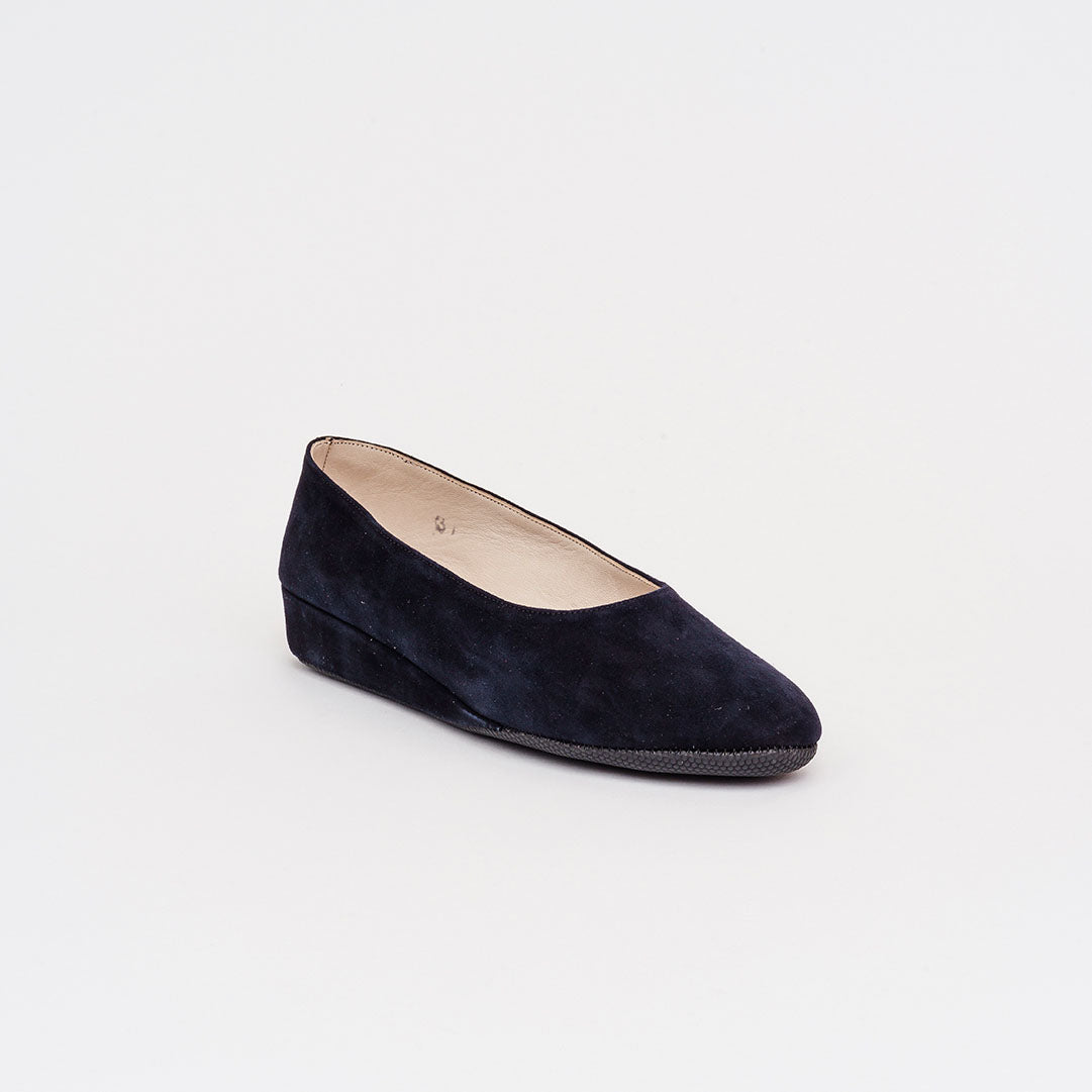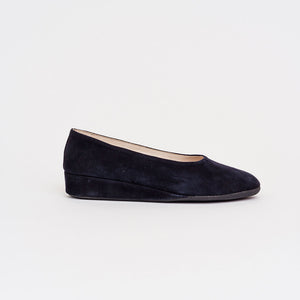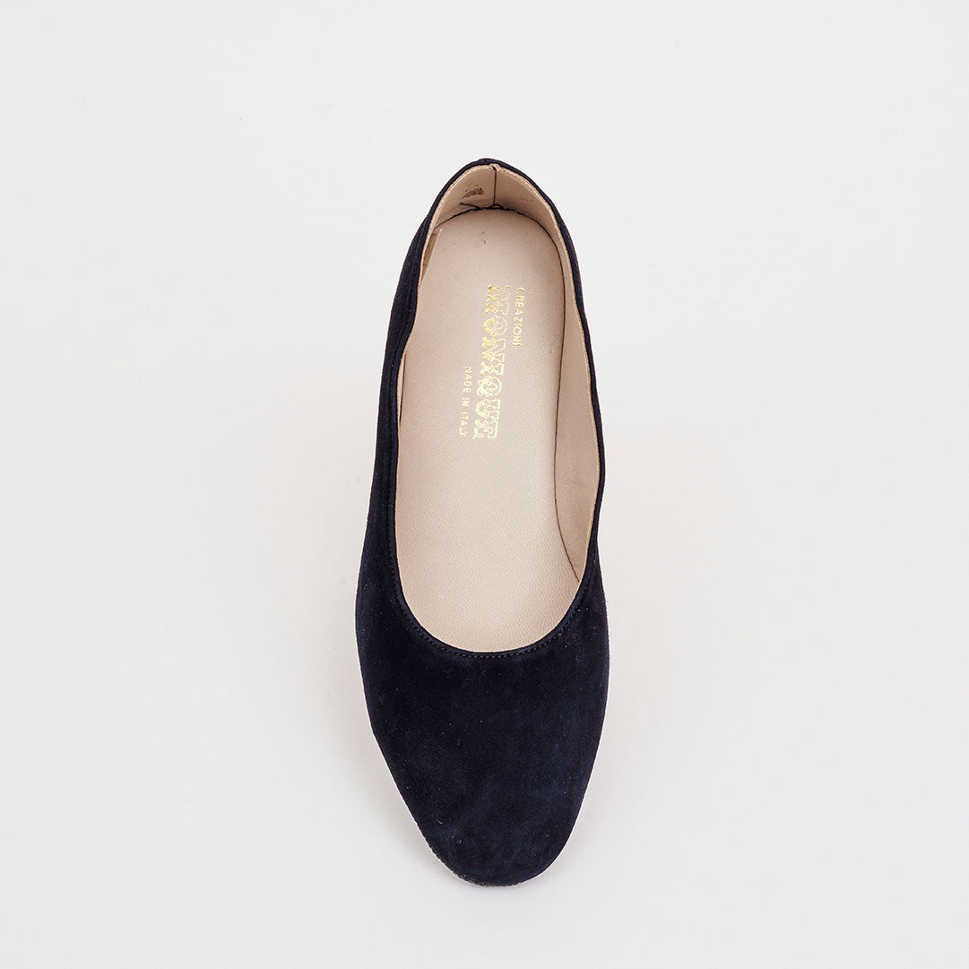 Pantofola chiusa in camoscio tacco 2,5 cm.