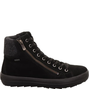 Polacchino con lacci e zip in tacco 2,5 cm.
