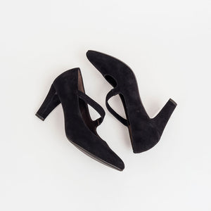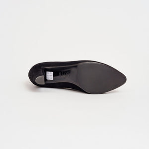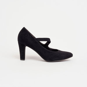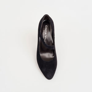 Décolleté in camoscio nero con listino trasversale tacco 7 cm.