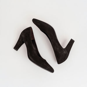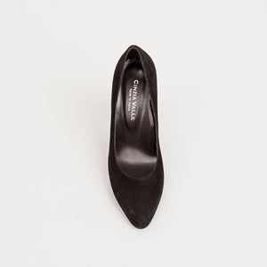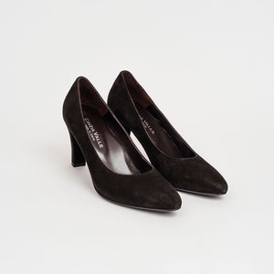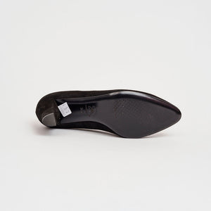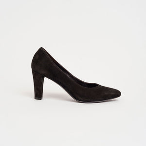 Il must-have di ogni stagione, il décolleté in morbido camoscio nero con tacco rivestito 7 cm.