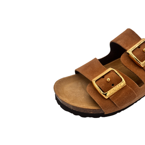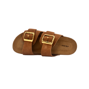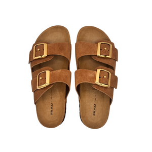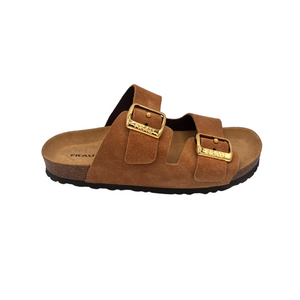Ciabattina con due fasce regolabili in camoscio tacco 2 cm.