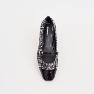 Décolleté con cinturino in tweed bianco-nero 1,5 cm.