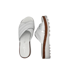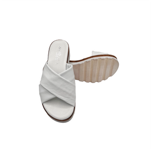 Ciabattina Bianca ad incrocio zeppa 3 cm.