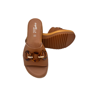 Ciabattina a fascia con accessorio zeppa 5 cm.