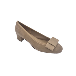 Décolleté in camoscio con fiocco, tacco 3 cm.