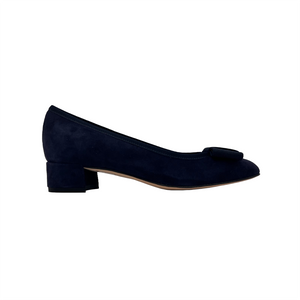 Décolleté in camoscio con fiocco, tacco 3 cm.