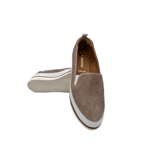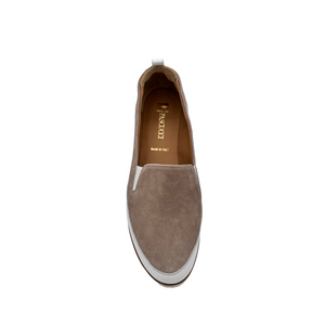 Un sottile bordo in color cappuccino interrompe il fondo in gomma rendendolo particolarmente leggero anche alla vista.