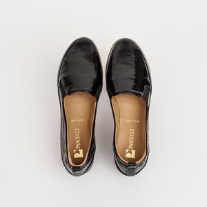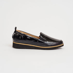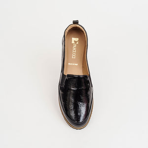 Slip-on pelle in vernice con zeppetta 4 cm.