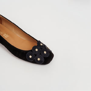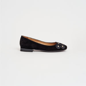 Ballerina elegante impreziosita da piccoli accessori che si coniugano perfettamente con la linea di questa calzatura rendendola versatile ma ricercata.