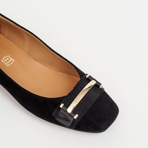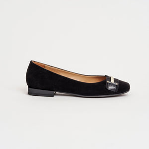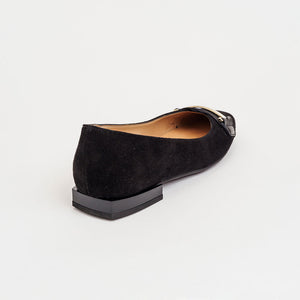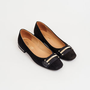 Ballerina elegante impreziosita da un accessorio che si coniuga perfettamente con la linea di questa calzatura rendendola versatile ma ricercata.