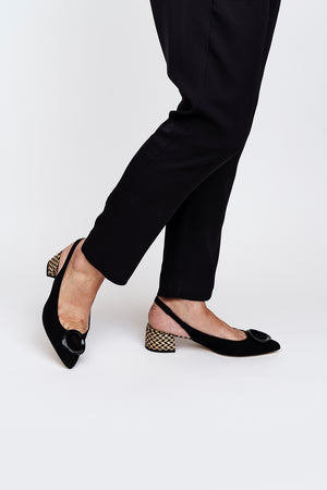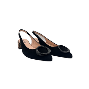 Chanel slanciata in camoscio con accessorio tacco 3 cm.