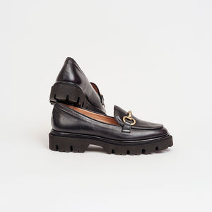 Mocassino in pelle nera con morsetto tacco 2 cm.