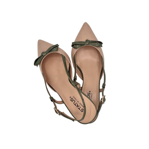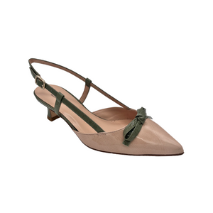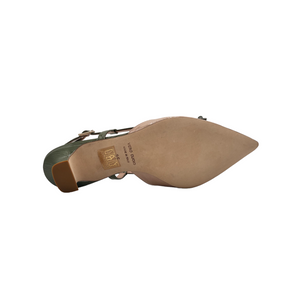 La vernice effetto cracklè dona un aspetto contemporaneo a questa chanel dallo stabile tacco a rocchetto.