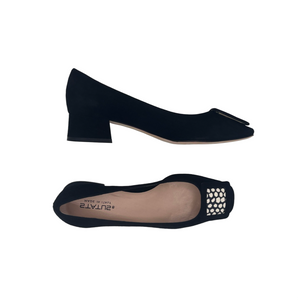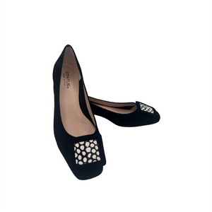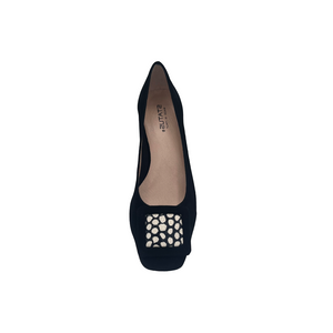 Décolleté in camoscio con applicazione bicolore tacco 3 cm.
