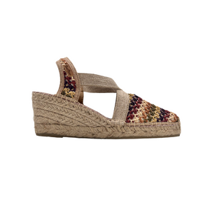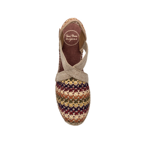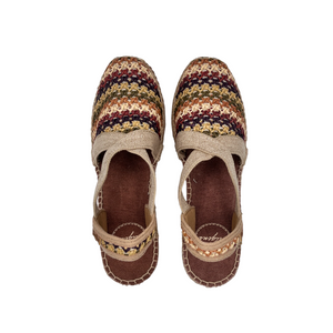 Espadrillas in tessuto effetto uncinetto fantasia zeppa 6 cm.