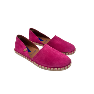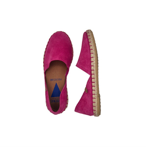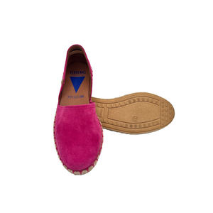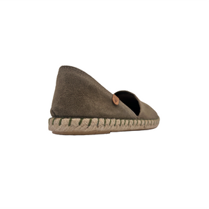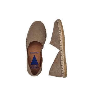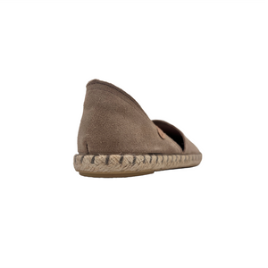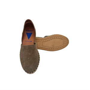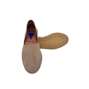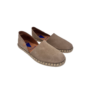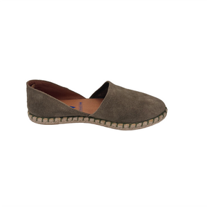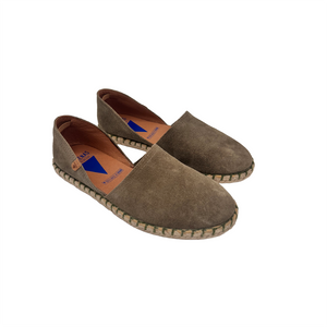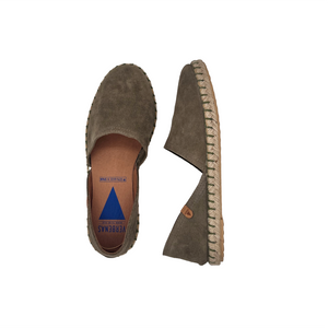 Iconica scarpasandalo - espadrillas aperte ai lati realizzate in camoscio con fodera e sottopiede in pelle.