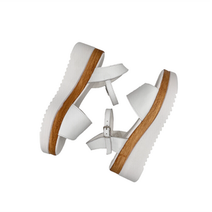 Sandalo a fascia, cinturino alla caviglia, zeppa 5 cm.