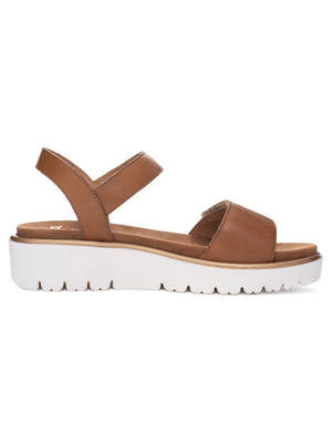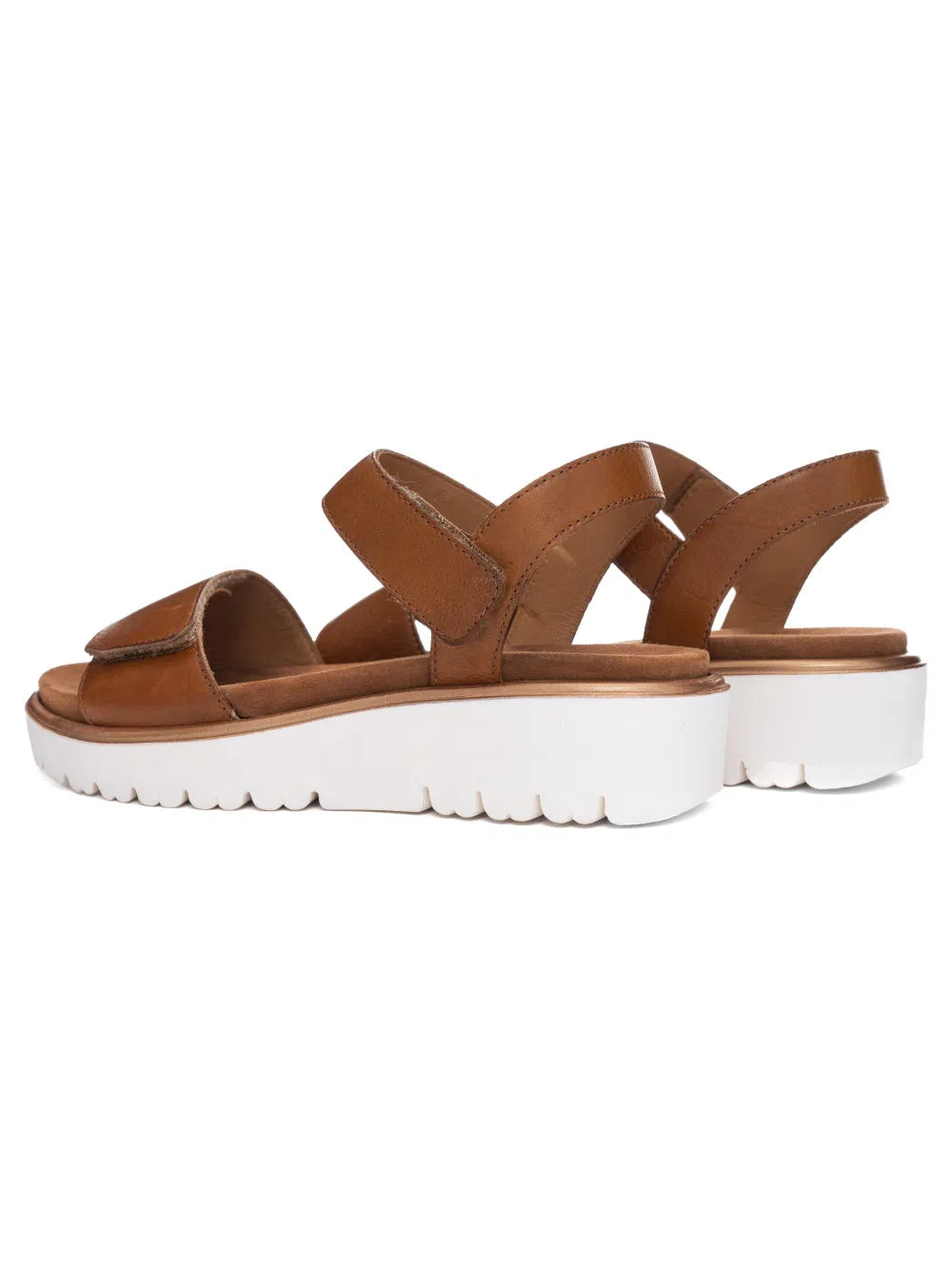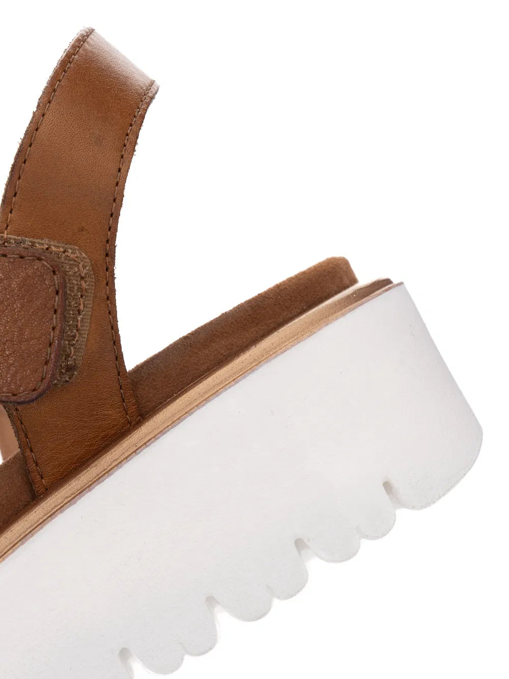 Sandalo regolabile in pelle cuoio zeppa 4,5 cm.