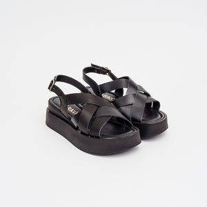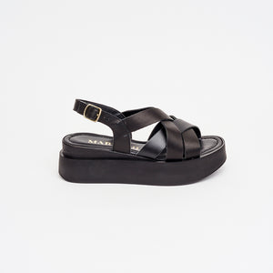 Sandalo in pelle nero zeppa 5 cm.