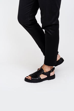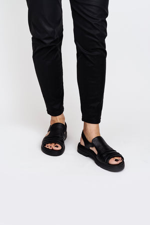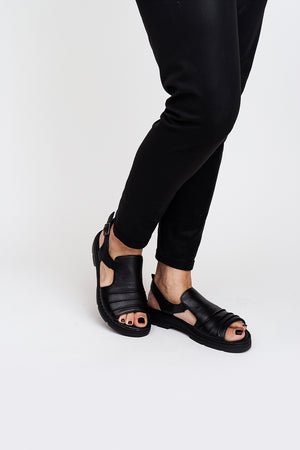 Sandalo in pelle nero tacco 3 cm.