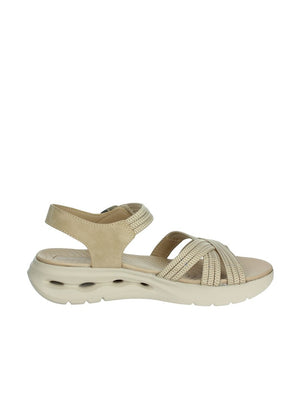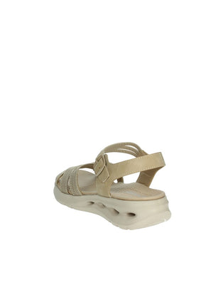 Sandalo regolabile in tessuto elasticizzato zeppa 4 cm.